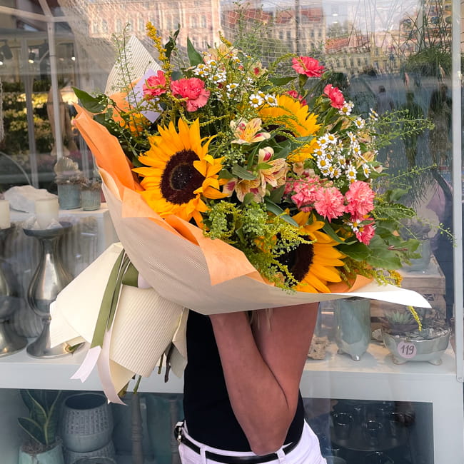 Energetyzujący autorski bukiet kwiatów ze słonecznikiem to świetny wybór, aby podarować bliskiej osobie trochę słońca. Ciepłe barwy i urzekający zapach roślin w naszej kompozycji to połączenie, któremu trudno się oprzeć. Nie czekaj na specjalną datę, aby podarować kwiaty kobiecie, którą kochasz. Kwiaty bez okazji to zawsze dobry pomysł. Znamy się na tym.